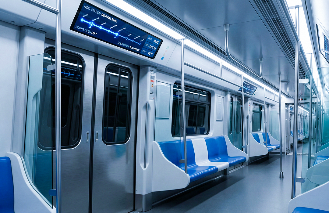 Passenger displays, public address systems, emergency intercoms, and onboard communication platforms for rail and transit vehicles.